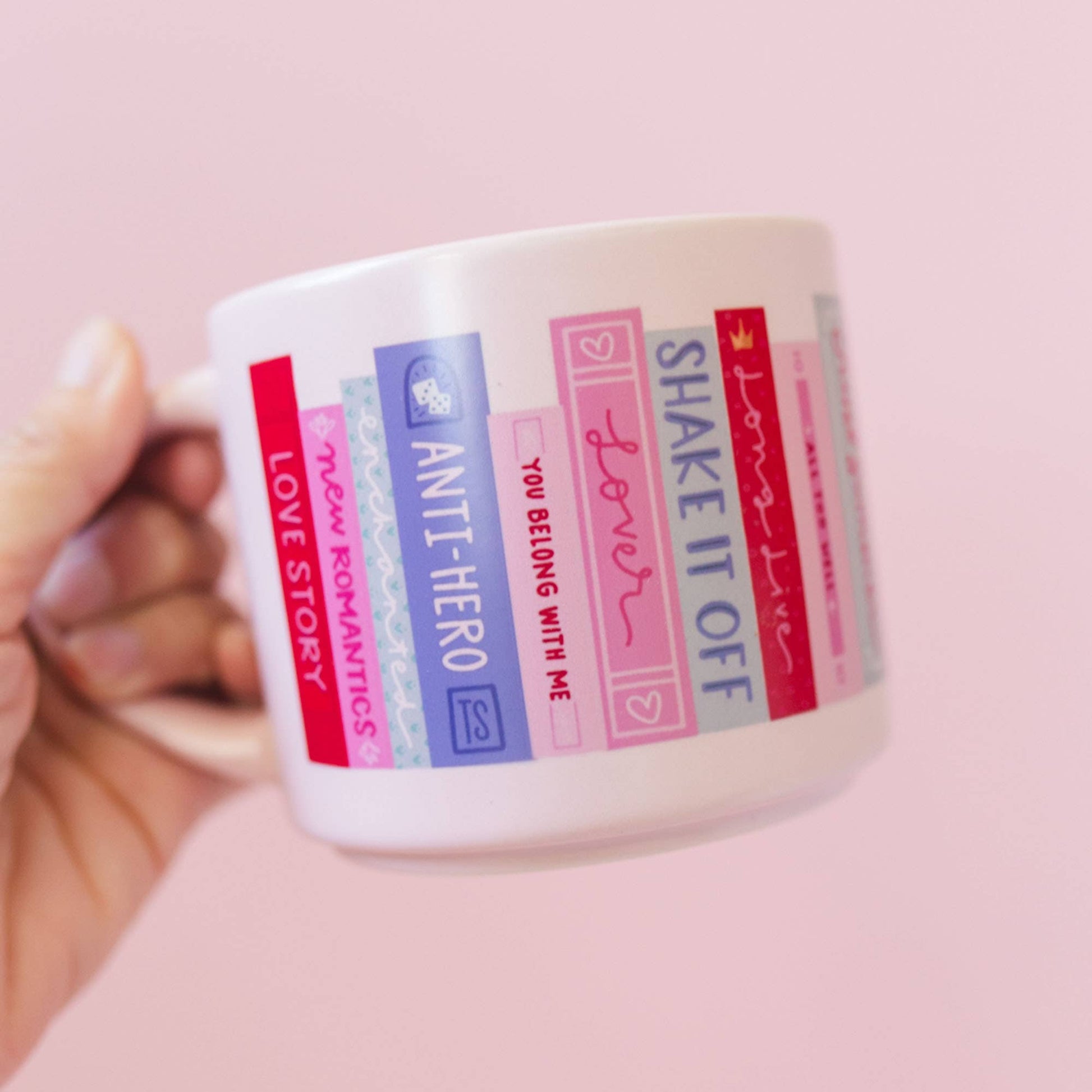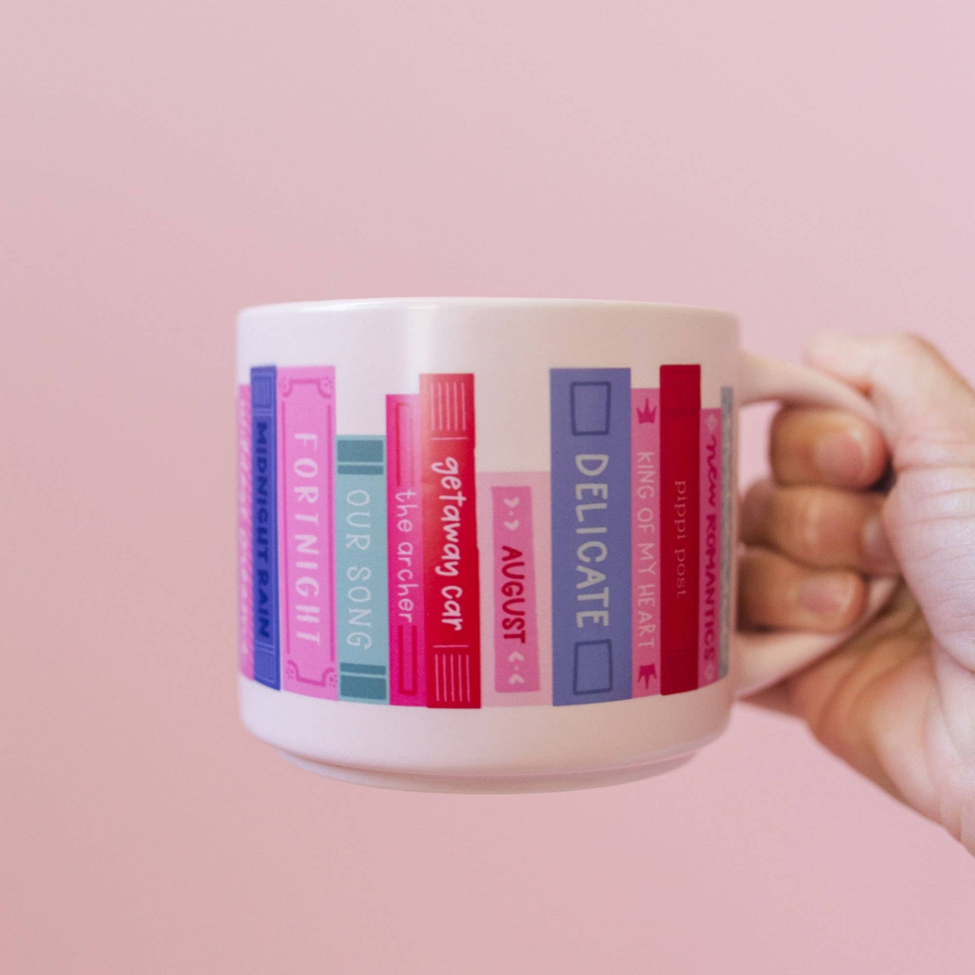 Sip your coffee with a side of music love using the Book Tour Bookshelf Mug, inspired by your most beloved songs. Featuring a cozy bookshelf design with spines named after iconic tracks, this oversized ceramic mug is perfect for long reading sessions, album replays, and reminiscing about every album. Whether you’re a music lover, a book lover, or both, this mug is a dreamy addition to your morning routine!