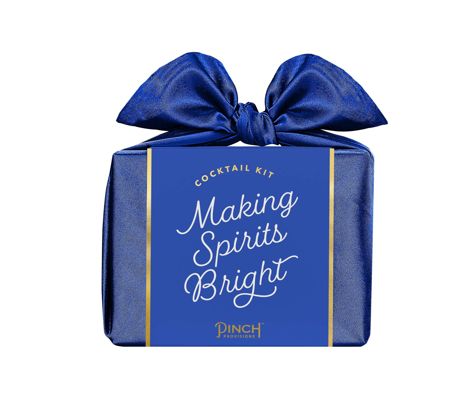 Shake well and serve this luxe Cocktail Kit by Pinch Provisions! This delightful assortment of 11 bartending essentials is ready to gift in a Furoshiki-style bow box. Whether you’re hosting a party or just having a fun night-in, sip in style with 2 spherical ice cube molds, 2 fl.oz. simple syrup, gold jigger, gold cocktail picks (2), edible gold drink glitter, coasters (2), decision coin, and a cocktail recipe booklet.