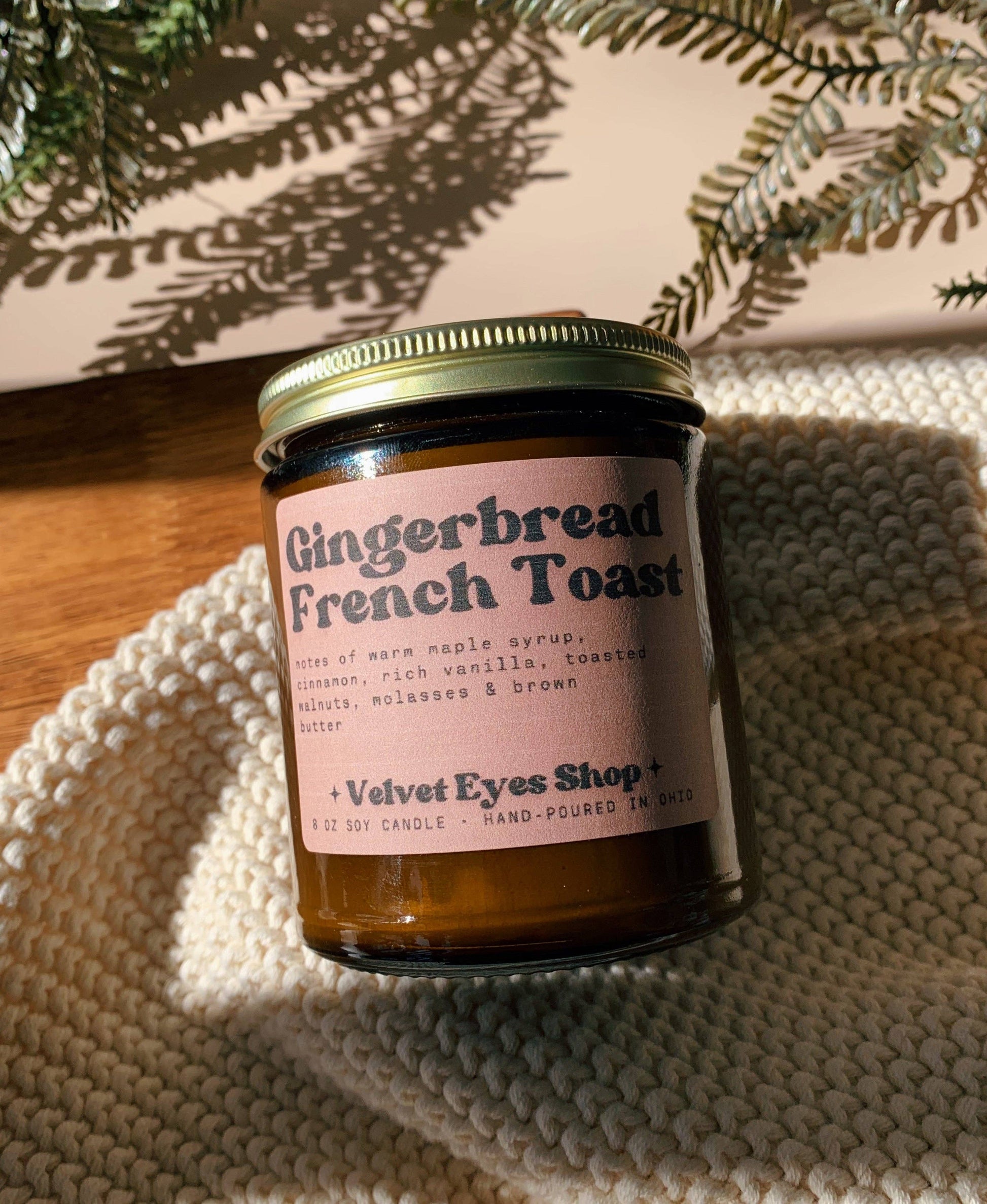 Gingerbread French Toast Fragrance Notes: warm maple syrup, cinnamon, rich vanilla, toasted walnuts, molasses & brown butter Weight: 4oz