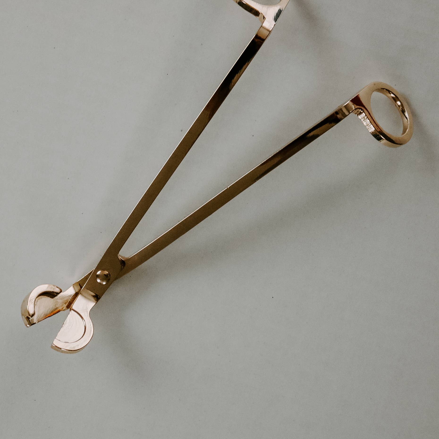 KIT INFO: • Size: 9 x 5.3 x 1.25" • Color: Gold Tone • Wick Trimmer: 6.75" • Candle Snuffer: 6.25" • Wick Dipper: 7.6" • Hand Lettered Drawstring Pouch Included